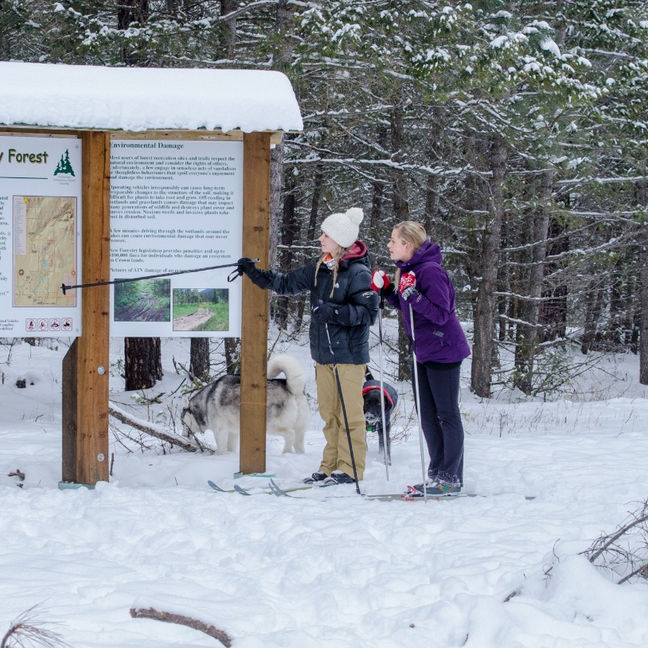 Kettle Loop (easy) 0.9 km - This interpretive trail starts at the Kettle Lake parking area and provides an easy walk around this lively area. Take the "guided tour” through the stations along the trail.